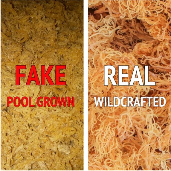 Our sea moss is 100% wildcrafted and is not pool grown. Attached is a simple picture of difference between our real wildcrafted sea moss and pool grown sea moss. You can easily tell the difference below.